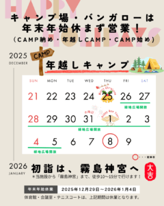 「キャンプ納め、年越しキャンプ、キャンプ始め」に是非ご利用ください♪😊